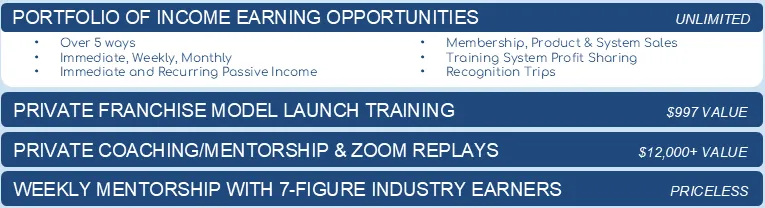 We have over 5 different ways to earn income ranging from immediate, weekly, and monthly payouts both for immediate income and recurring passive income.